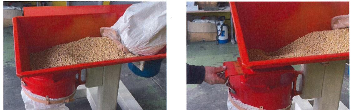 Tramoggia di carico dotata di serranda per regolazione del flusso di carico mulino